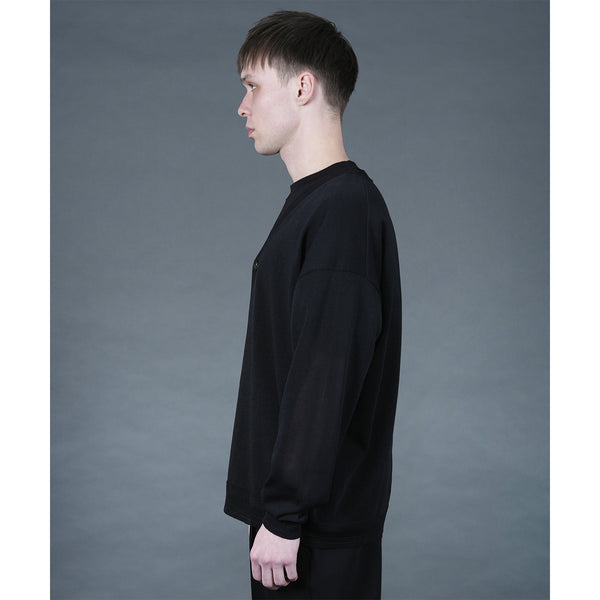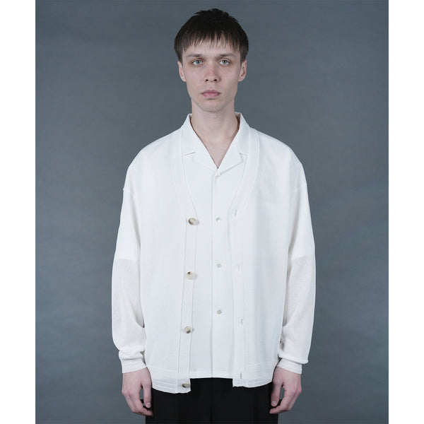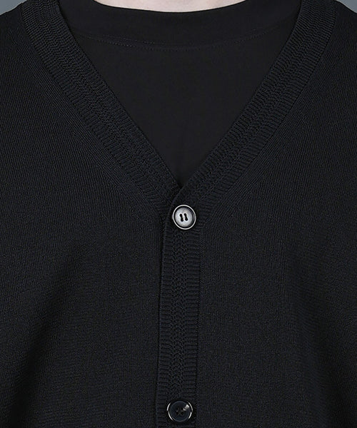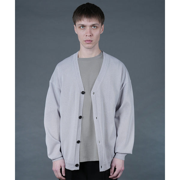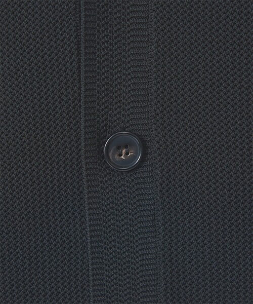 新たに開発したリサイクルポリエステルを麻のようなシャリ感のDRYTECH Knit 糸を採用。更に麻を混ぜることでより麻感をプラス。綿タッチドライ感のある糸なので、厚さがあっても夏でもサラッとした冷感で涼しさのあるカーディガンに。高級な編み機を使用することでベーシックな天竺編みでも高級感のある1着。